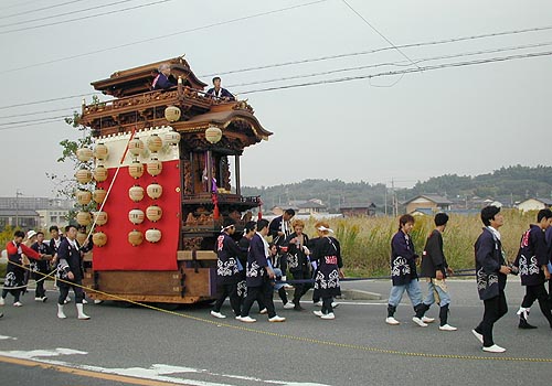 タクシーで山車に追い付きました。