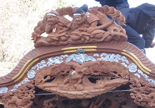 彫刻の様子です。平野の野南の先代地車です。