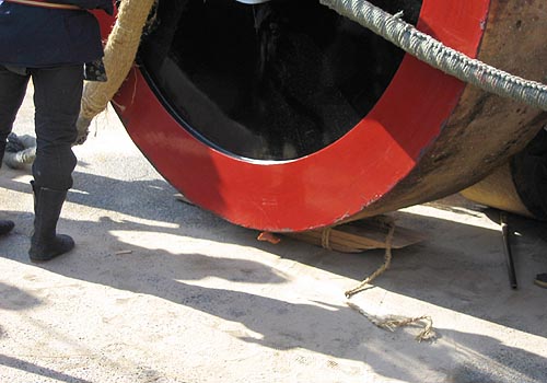 曳き綱で回転